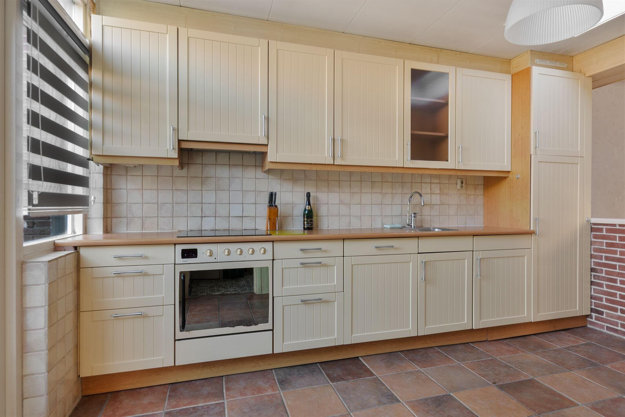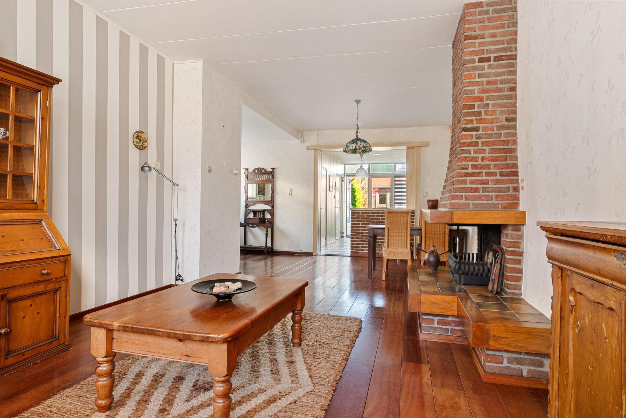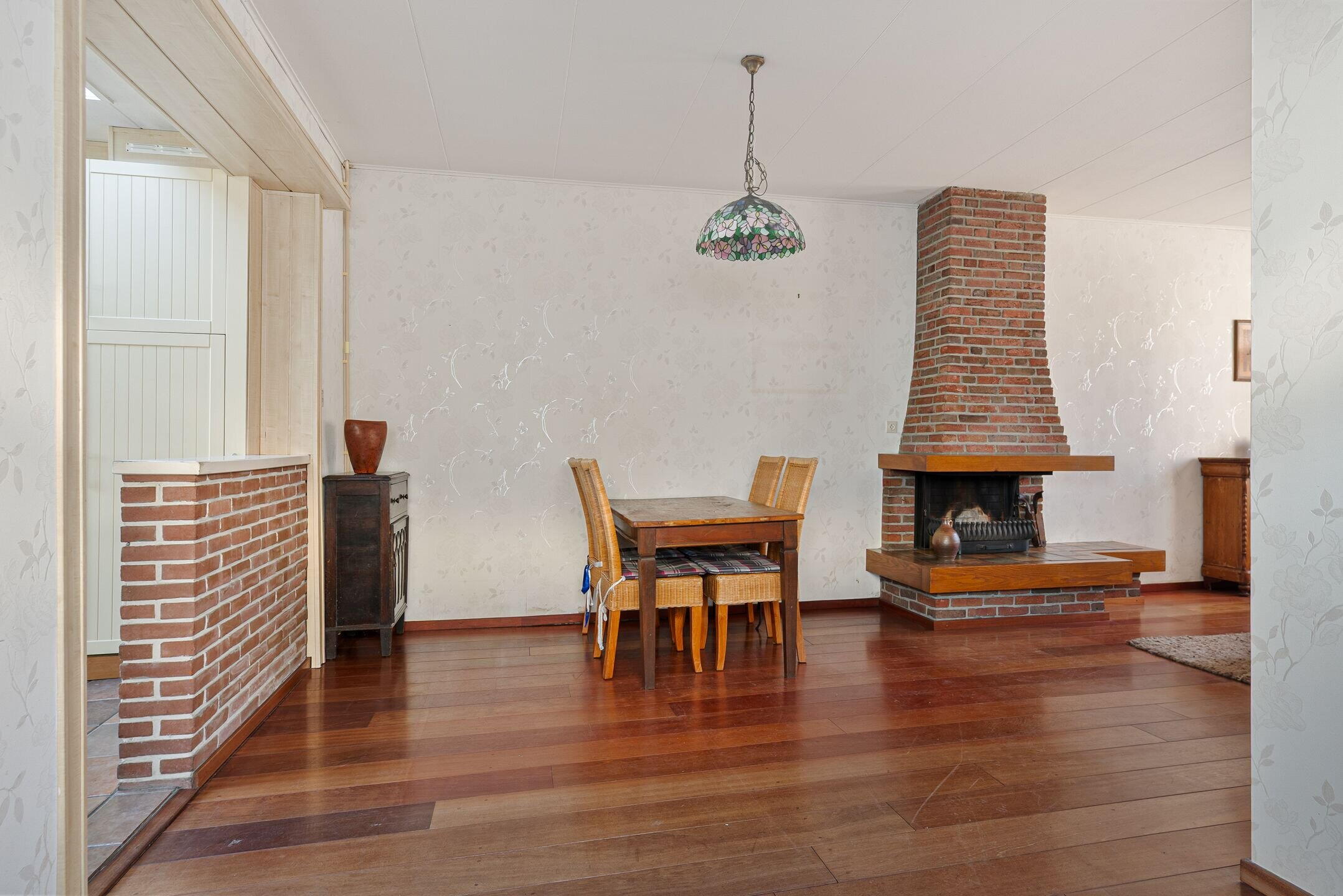 De woonkamer vormt het warme hart van de woning. Dankzij de open haard ontstaat hier een bijzonder gezellige sfeer, perfect voor knusse avonden. De ruimte biedt voldoende plek voor een comfortabele zithoek en een eettafel. Aansluitend bevindt zich de keuken, die praktisch is ingericht en een fijne plek vormt voor het bereiden van maaltijden en het dagelijks gebruik.
