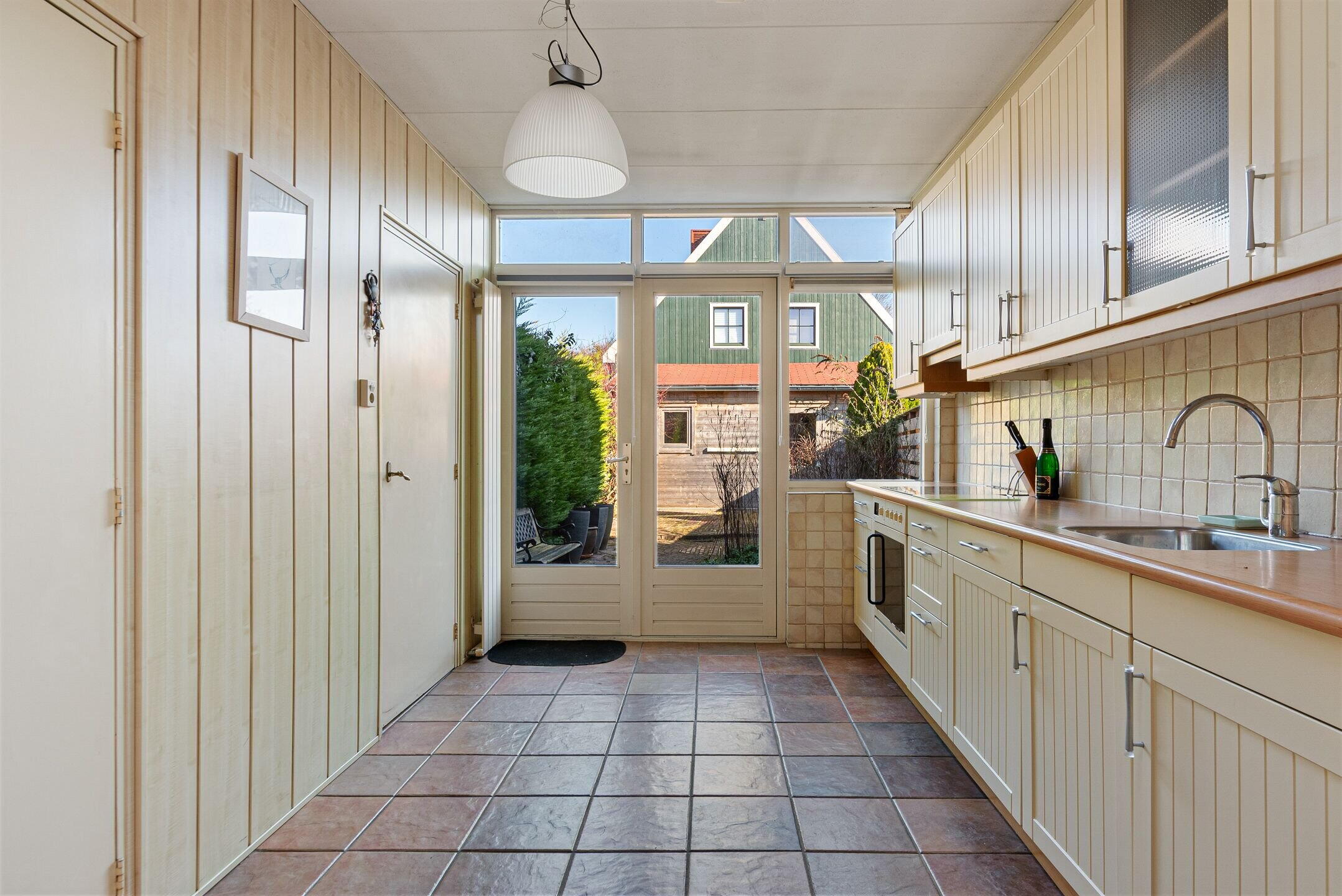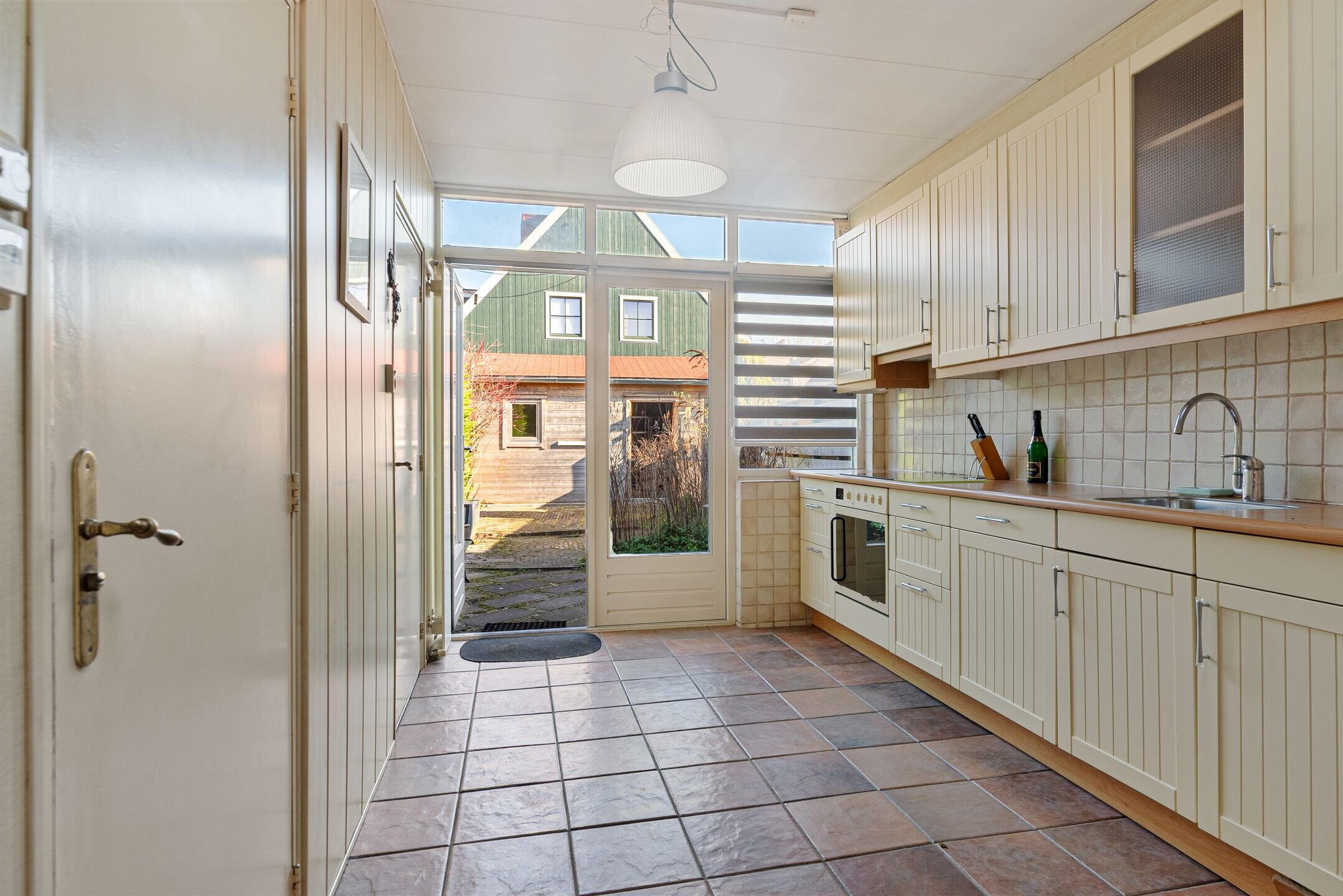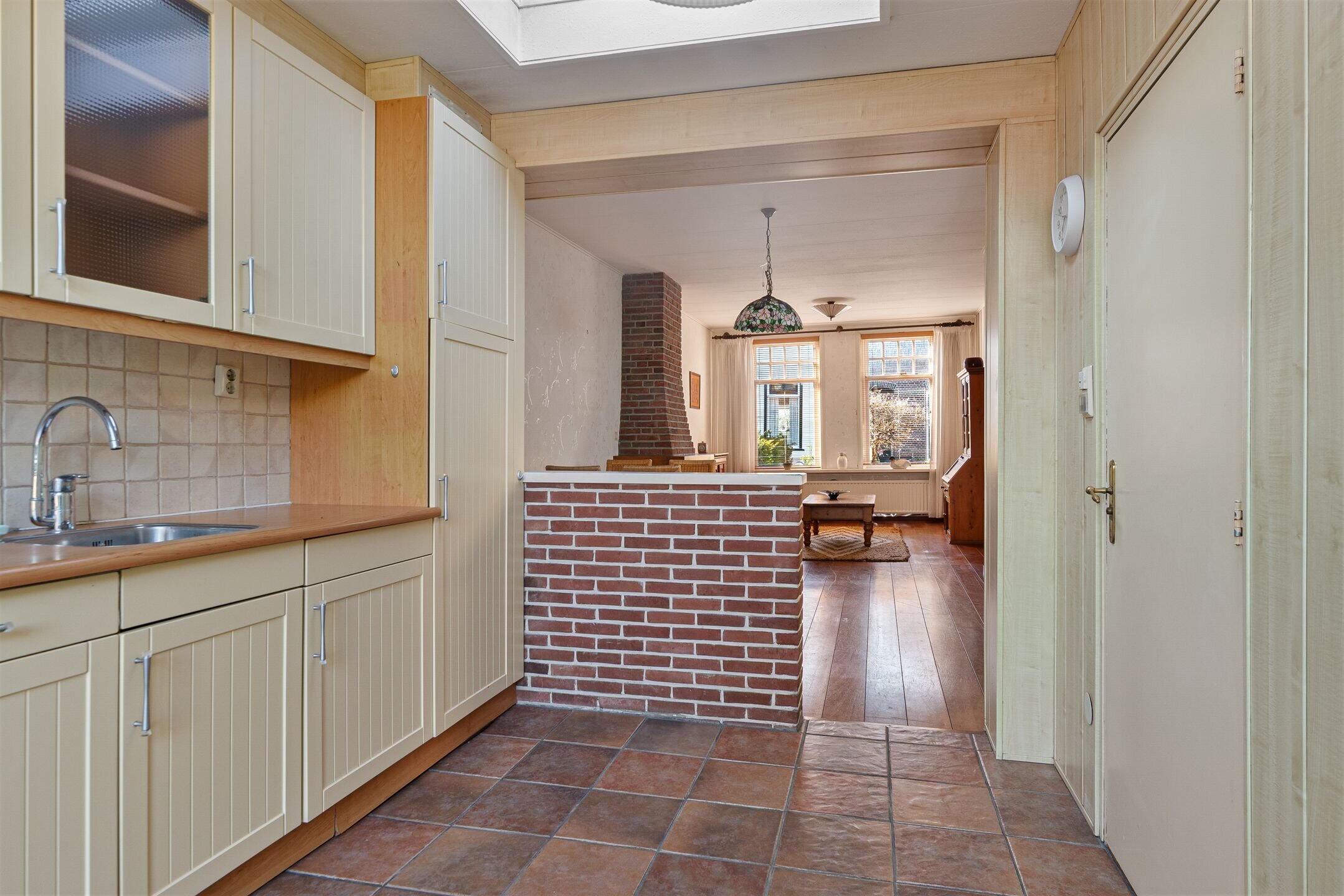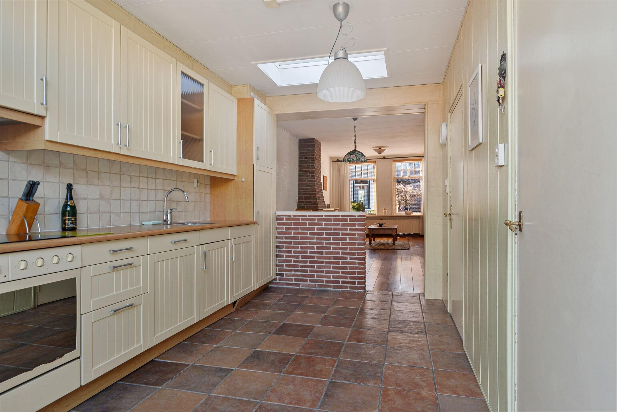 De woonkamer vormt het warme hart van de woning. Dankzij de open haard ontstaat hier een bijzonder gezellige sfeer, perfect voor knusse avonden. De ruimte biedt voldoende plek voor een comfortabele zithoek en een eettafel. Aansluitend bevindt zich de keuken, die praktisch is ingericht en een fijne plek vormt voor het bereiden van maaltijden en het dagelijks gebruik.